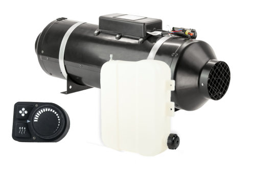 Техническая документация; топливный насос; заборник воздуха; топливный бак; выхлопная труба; гарантийный талон; топливная трубка; пульт управления; крепежи для установки отопителя; проводка для подключения питания.